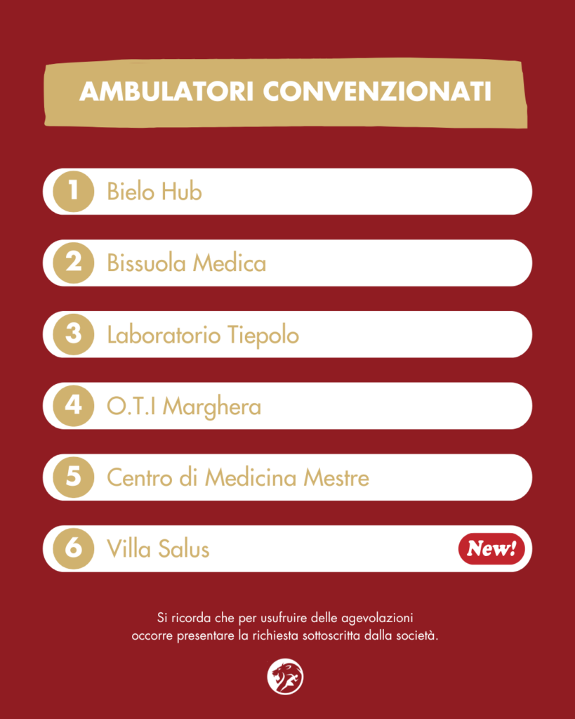 Le agevolazioni previste sono riservate ai tesserati e possono essere utilizzate presentando il modulo di richiesta sottoscritto dalla società al momento della prenotazione o della visita. Senza il modulo, la convenzione non potrà essere applicata.
